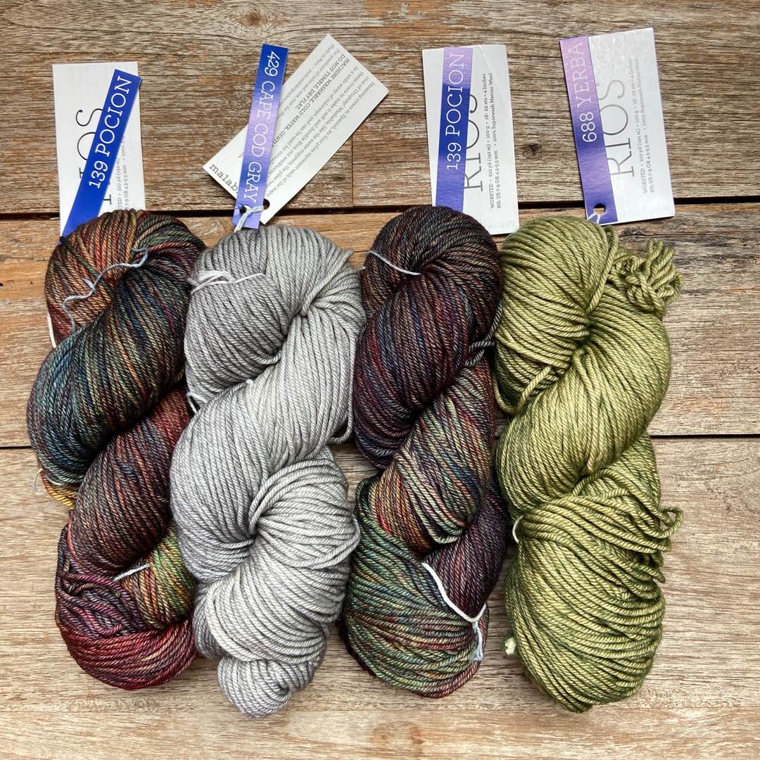 These are the colors I chose, I’m going for 2 contrast colors that I’m going to alternate. They are 139 Pocion, 429 Cape Cod Gray, 688 Yerba