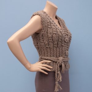 Deze eenvoudige versie heeft een kabel aan de bovenzijde en past goed bij de Peru muts met kabel, en ook onder je jas/vest met 3/4 mouw.